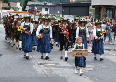 Die Musikkapelle Oetz besteht hauptsächlich aus Blasinstrumenten wie Trompeten, Posaunen, Klarinetten, Saxophonen und Tuben, die durch Schlaginstrumente wie Schlagzeug und Pauken ergänzt werden.