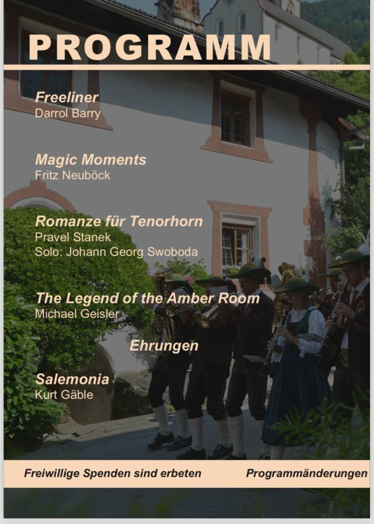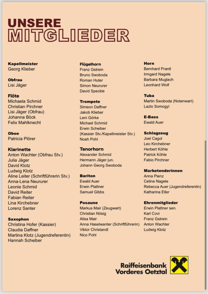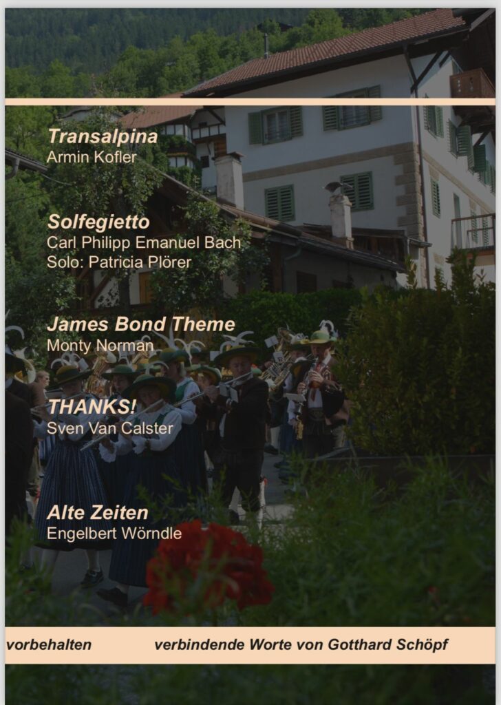 Begleitende Worte kommen von Gotthard Schöpf. Die Musikkapelle Oetz freut sich auf zahlreichen Besuch. Eintritt: Freiwillige Spenden erbeten.