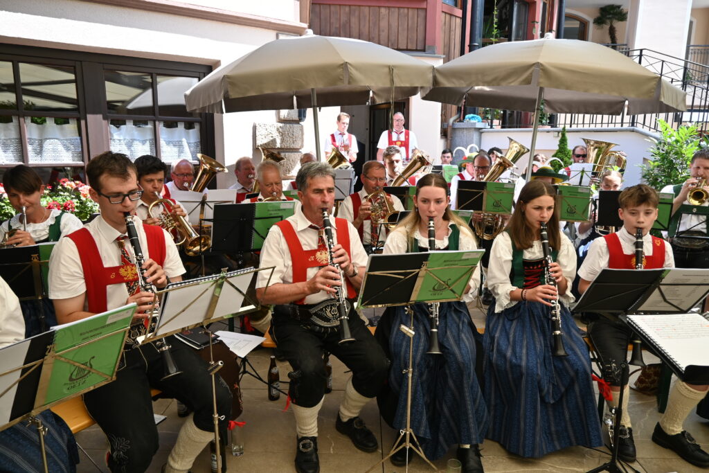Im Anschluss lud die Musikkapelle Oetz zu einem stimmungsvollen Frühschoppen-Konzert beim Post Hotel Kassl ein. Ein besonderer Moment war dabei der erste öffentliche Auftritt unseres Jungmusikanten Lorenz in seiner neuen Rolle: Er übernahm zum ersten Mal die Ansage der Musikstücke – mit großer Sicherheit und viel Charme. Künftig wird Lorenz auch bei unseren Platzkonzerten durchs Programm führen – wir freuen uns sehr über dieses junge Engagement!